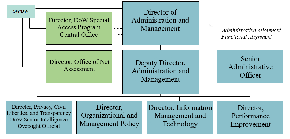 The Director of Administration and Management (DA&M) has three broad missions in support of the SecWar, DepSecWar, the Office of the Secretary of War, tenants of the Pentagon Reservation, and specified activities: (1) Principal Staff Assistant and advisor to the SecWar and DepSecWar on specified organizational, management, and administrative matters. (2) Administrative services agent in the National Capital Region (NCR) and senior official responsible for the Pentagon Reservation. (3) Security, law enforcement, and emergency management provider for the Pentagon, and designated DoW facilities in the NCR. The DA&M exercises authority, direction, and control over the ODA&M directors, Director of Washington Headquarters Services, and the Director of the Pentagon Force Protection Agency. The DA&M proactively engages partners and stakeholders in the management, governance, services, and continuity of operational functions of the DoW Headquarters.